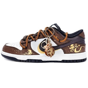 [Custom Female dragon carp]  Dunk Skateboarding Shoes Women's Low-top Brown/white/gold [Custom Female dragon carp]  Dunk Skateboarding Shoes Women's Low-top Brown/white/gold