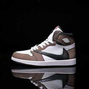 [Custom Khaki Color - Backwards Swoosh Cowhide Leather] Air Jordan High - Top Skateboarding Shoes Unisex [Custom Khaki Color - Backwards Swoosh Cowhide Leather] Air Jordan High - Top Skateboarding Shoes Unisex